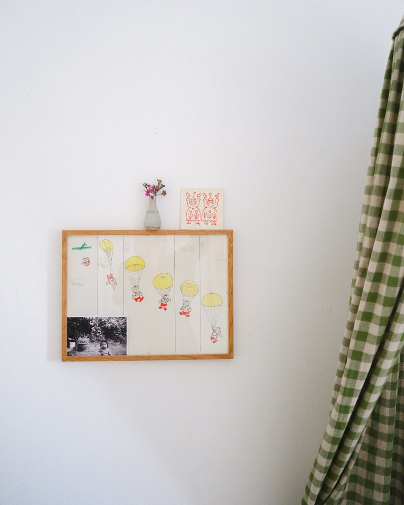 I think it’s all the personal little touches on the walls, like the kids' crafts, postcards, souvenirs from our trips, or tiny dried flower bouquets they’ve picked and kept in little vases. These things really capture the personalities of our two boys and you can see a bit of their character in every corner of the room.